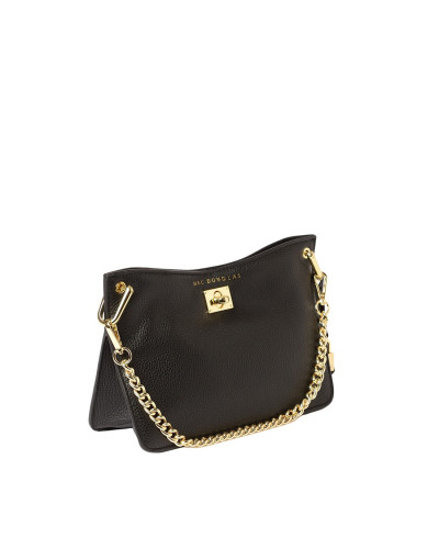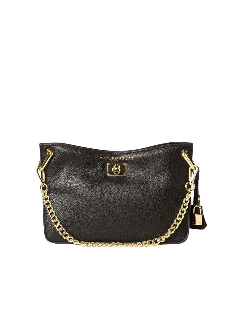 Optez pour l'audacieux sac en bandoulière Audace ! Son magnifique cuir de vachette grainé et sa forme distinctive en font un accessoire indispensable. Il s'ajuste à vos besoins grâce à sa bandoulière réglable et à sa chaîne, toutes deux détachables. À l'ouverture du sac via son fermoir rotatif, vous découvrirez qu'il est divisé en deux compartiments, séparés par une poche centrale zippée. Chacun de ces compartiments comprend également une poche intérieure zippée et une poche plate. Le sac est agrémenté de détails métalliques dorés, tels qu'un cadenas décoratif et un pendentif en forme de clé. De plus, il est doublé de toile monogrammée Mac Douglas.
